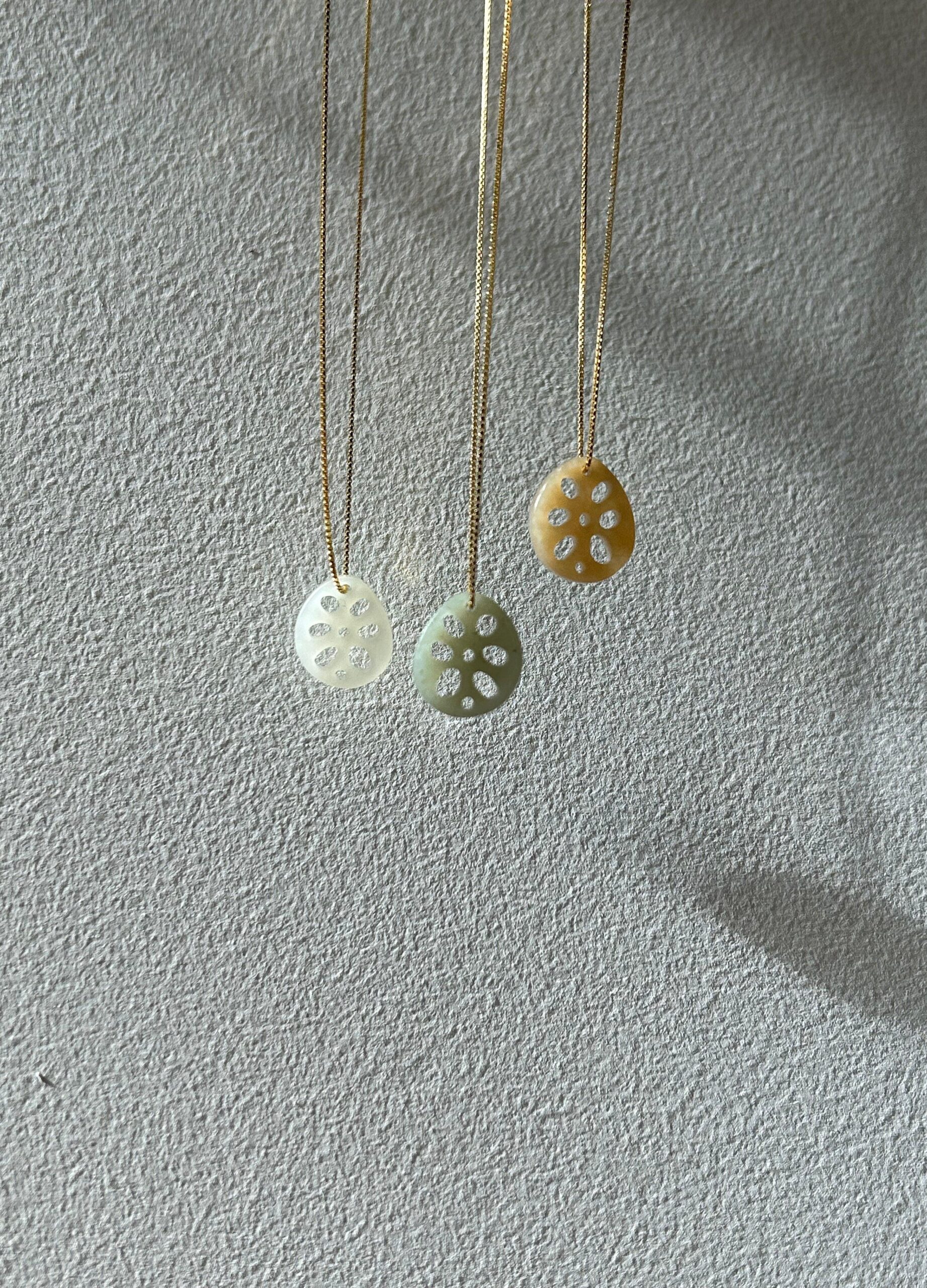 Lotus root jade pendant necklace is a celebration of this holiday season as a symbol of harmony and unity. Featuring an adjustable gold-plated S925 silver box chain, the lotus root pendant necklace adds a subtle pop of green to any outfit. It’s great for everyday wear as well as a gift for your loved ones.