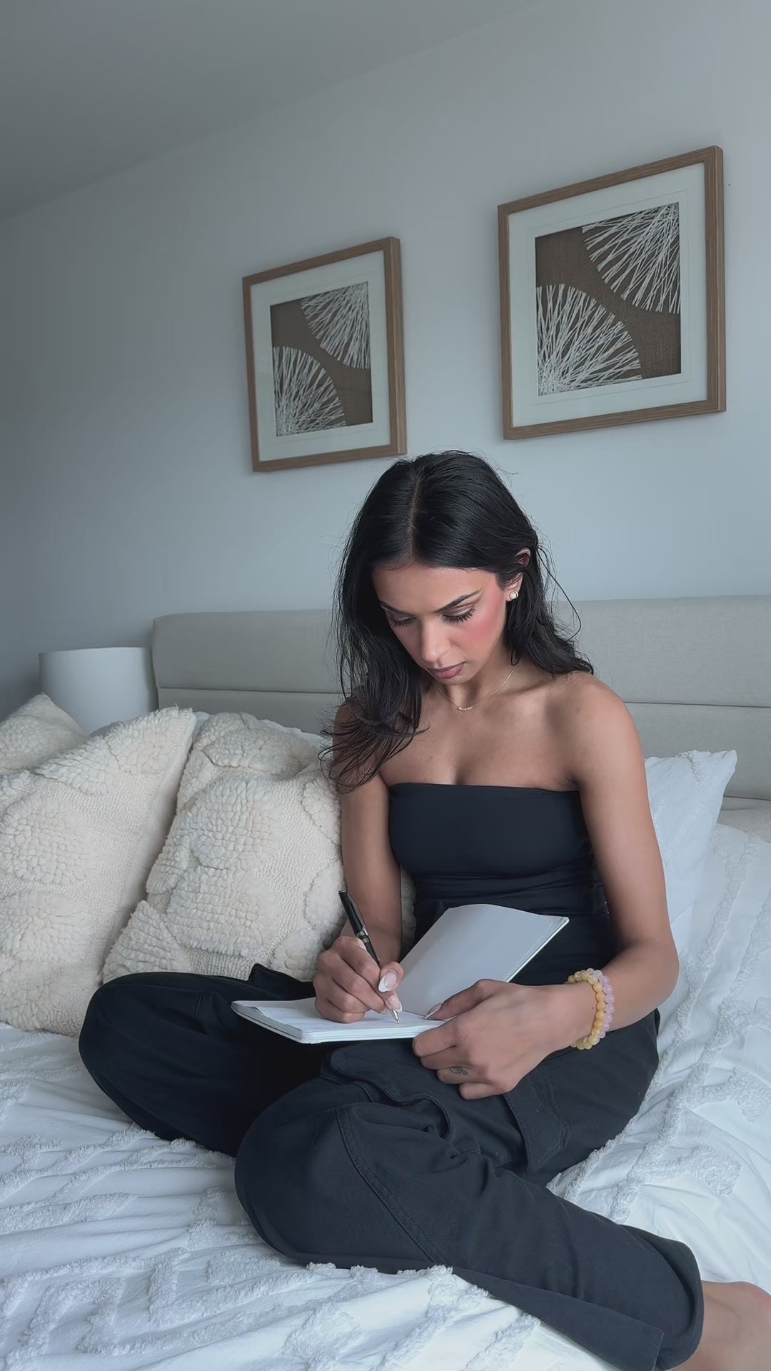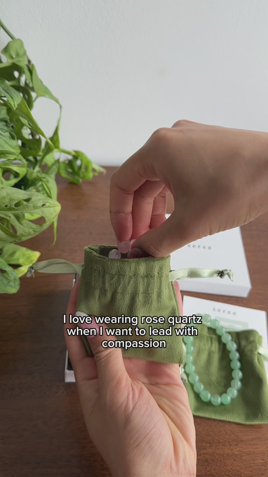 Hand-strung with natural pink crystal beads, and comes with a velvet pouch and intention card to hold the feeling close.