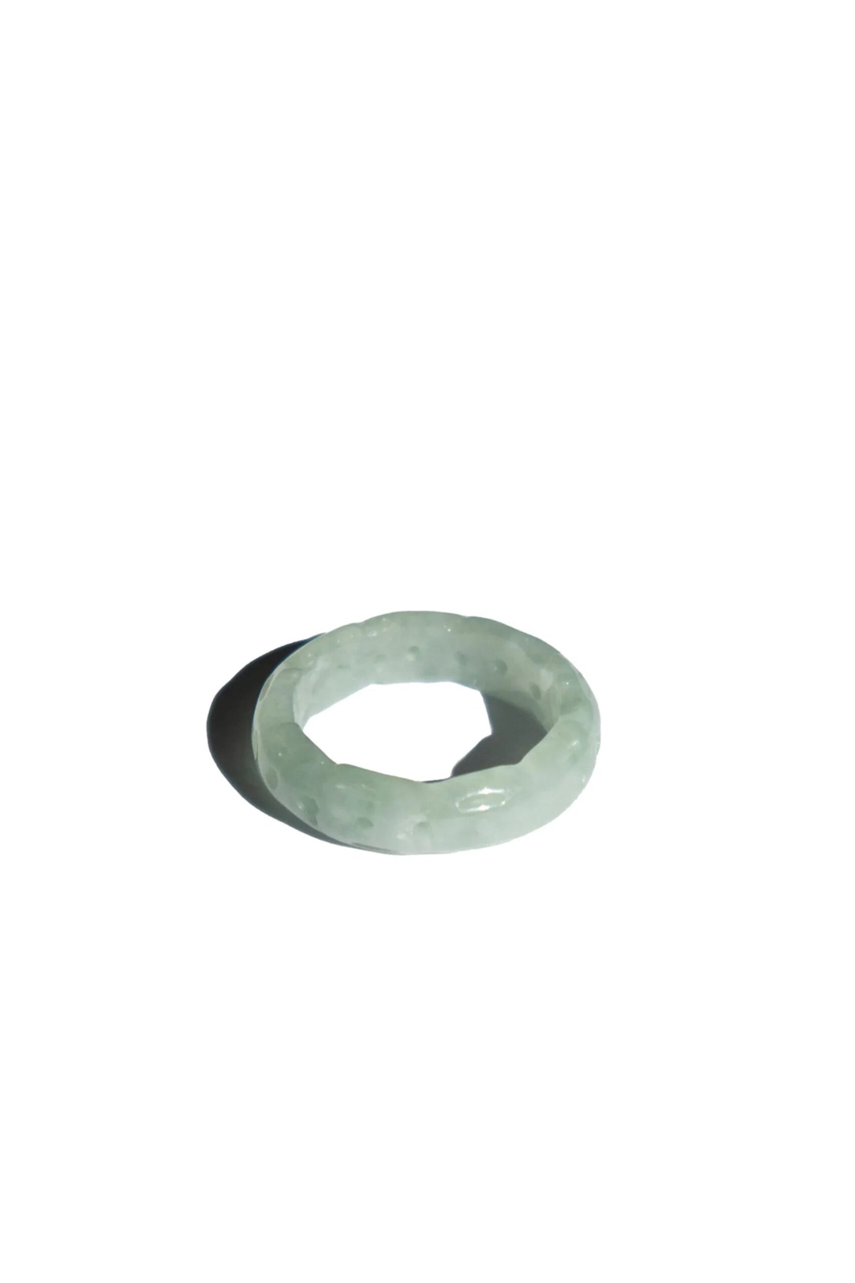 This Weave ring is hand-crafted from off-white jadeite, giving it an elegant and intricate “woven” look.